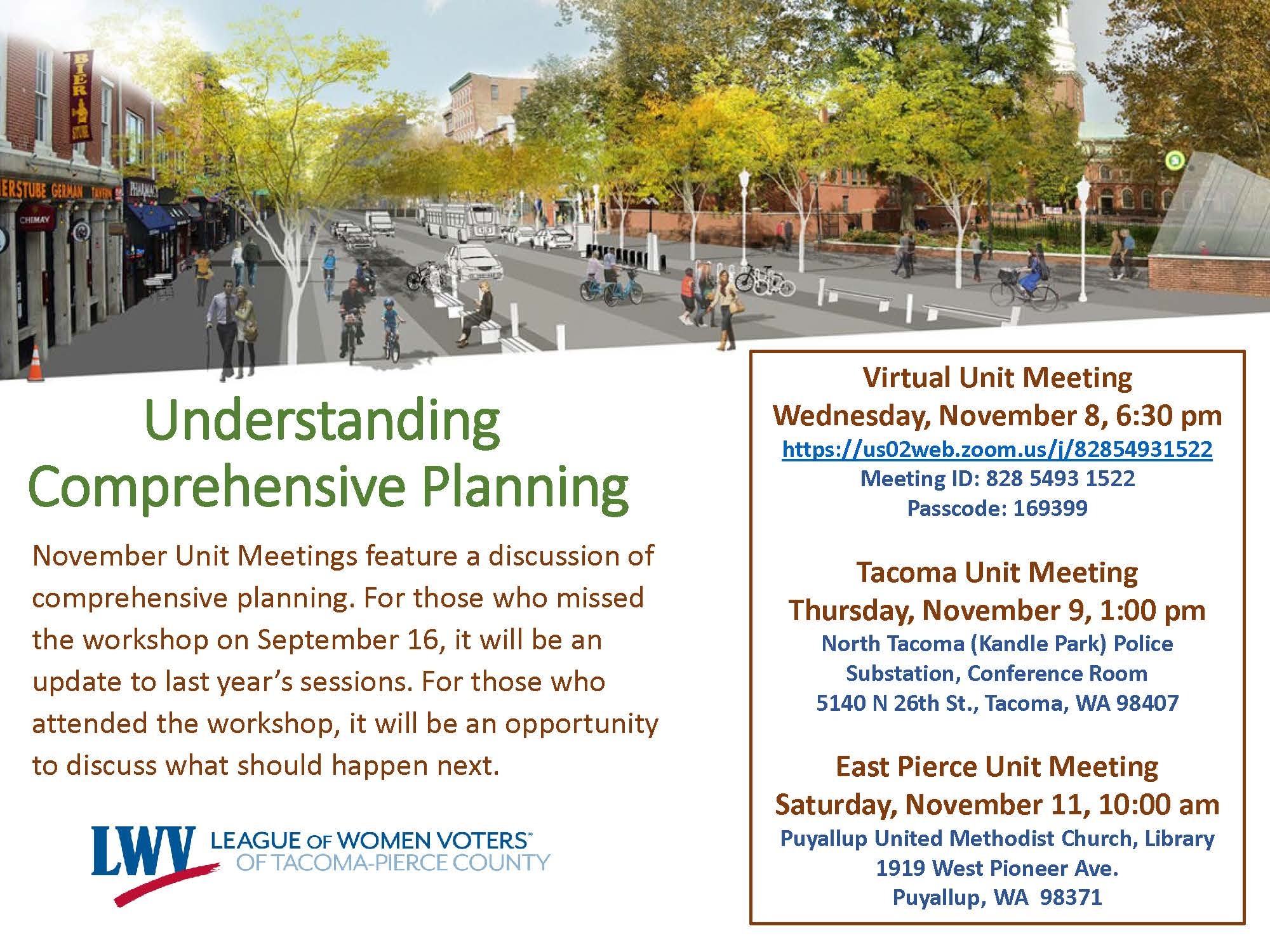There is also an all-member Program Planning meeting scheduled for December 3, 12:30 to 3:30 pm, at First United Methodist Church (Friendship Hall, in the basement), 621 Tacoma Ave. S., Tacoma 98402. Save the date and plan to join League friends for a potluck lunch and discussion of what the League should do for studies and/or action in the 2024-25 program year. Ideas prioritized by members at the Program Planning meeting will be developed into proposals for voting at the Annual Meeting in June.
